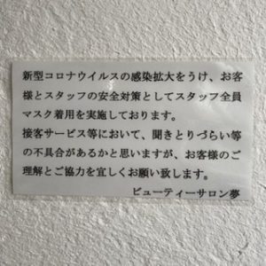 よりお客様に安心していただけるよう、スタッフは全員マスクを着用して営業させていただきます。